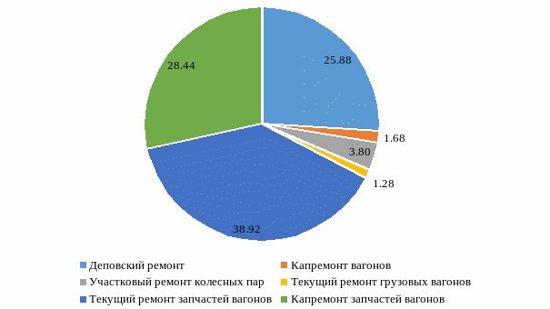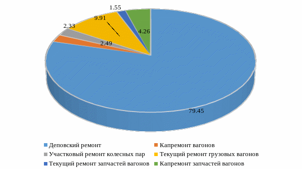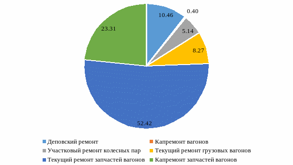 | Текущий ремонт запчастей вагонов | 9527 | 5211 | 7530 | 37,97 | 38,92 | 52,42 |