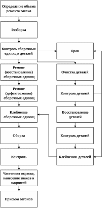 Общая технологическая схема ремонта вагона изображена на рисунке 2.2