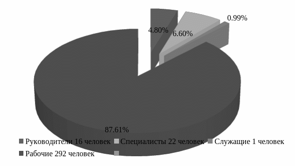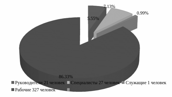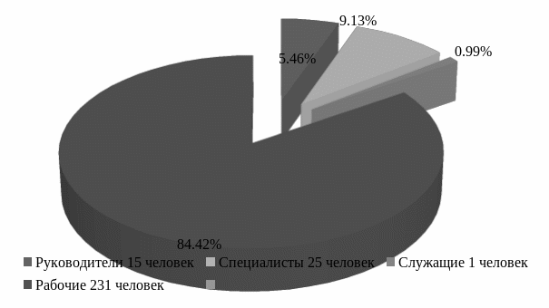 Количество руководителей в 2014 году составляло 15 человека, на них приходится 5,5 % всей численности.