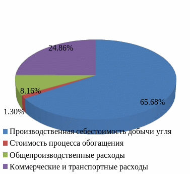 Себестоимость добычи угля включает в себя: производственную себестоимость добычи угля, стоимость процесса обогащения, общепроизводственные расходы, коммерческие и транспортные расходы.
