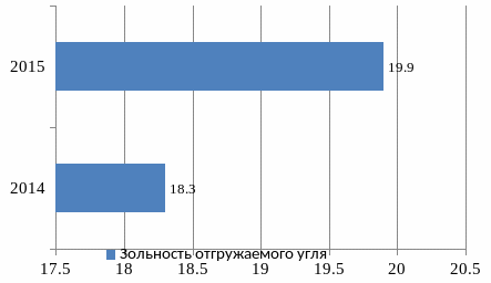 | Зольность отгружаемого угля | % | 18,3 | 19,9 | 1,6 | 108,74 |