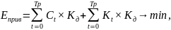 В случае одноэтапных инвестиций (Ко), постоянной величине текущих затрат и отсутствии необходимости дисконтирования денежных потоков можно преобразовать данную зависимость и определить годовые приведённые затраты: