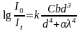 В турбидиметрическом методе для учета интенсивности прошедшего светового потока обычно используется следующая формула [5]: