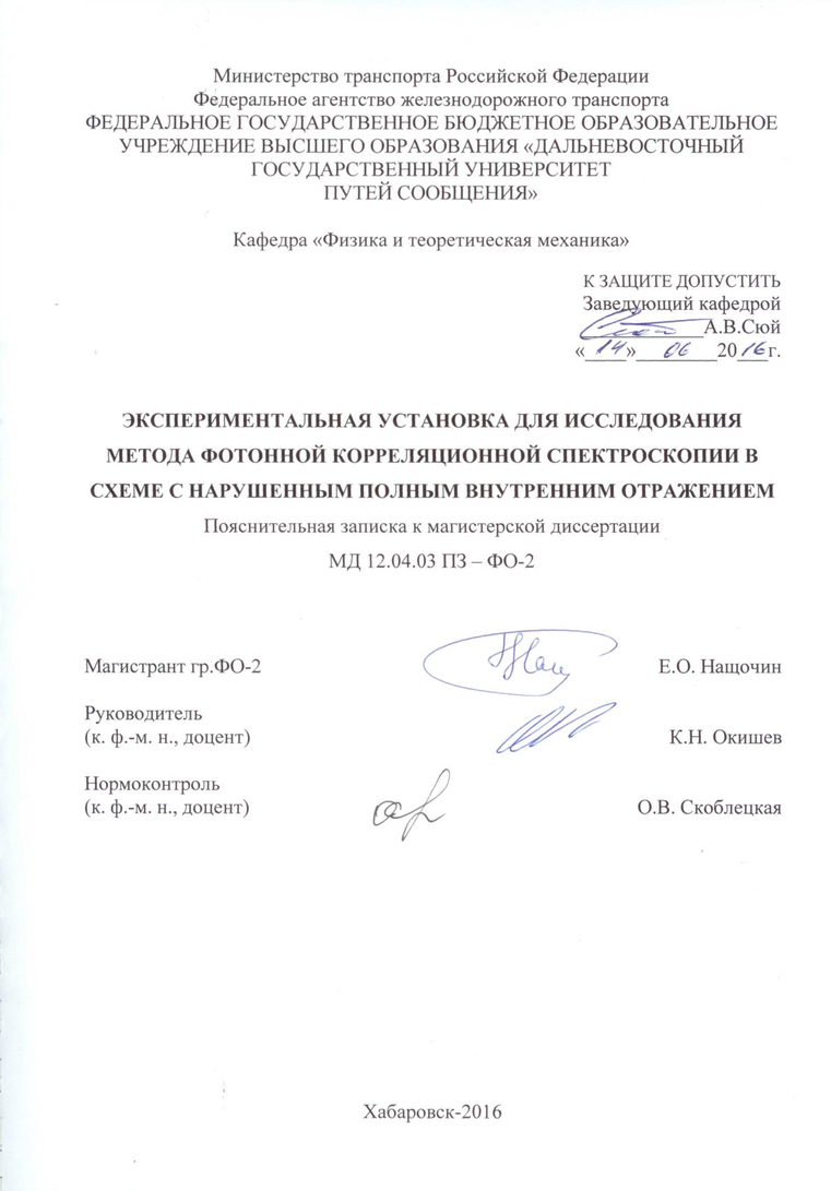 Целью настоящей работы является изготовление экспериментальной установки для исследования фотонной корреляционной спектроскопии в схеме с нарушенным полным внутренним отражением. Рассматриваемая схема призвана разрешить проблемы классической фотонной корреляционной спектроскопии: повысить достоверность измерения полидисперсных распределений частиц по размерам и повторяемость измерений.