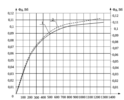 Графики характеристик намагничивания тягового электродвигателя ЭД-118А в именованных единицах показаны на рисунке 1.1.