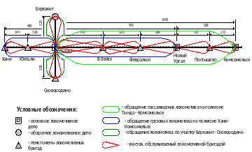 Рисунок 1.1 – Схема участков обслуживания локомотивного депо Тында