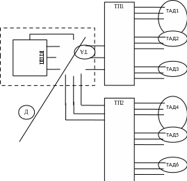 Д – дизель; ТА – тяговый агрегат; ВТПП – выпрямительная установка; ТП – тяговый преобразователь на IGBT – транзисторах; ТАД – тяговый асинхронный двигатель