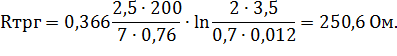 ψг – коэффициент сезонности для горизонтального заземлителя (III климатическая зона), равный 2,5;