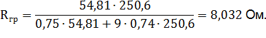 Сравним полученное значение RГР с RДОП 8,032 Ом<10 Ом.