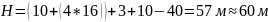 Согласно СНиП 2.04.02-84 п. 2.26. Минимальный свободный напор в сети водопровода населенного пункта при максимальном хозяйственно-питьевом водопотреблении на вводе в здание над поверхностью земли должен приниматься при одноэтажной застройке не менее 10 м, при большей этажности на каждый этаж следует добавлять 4 м. Учтем напор, подаваемый на вход насосной станции, по нормам равный 40м. Потери напора в трубопроводе примем 3м. Следовательно, для шестнадцатиэтажного здания имеем