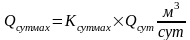 Вследствие неравномерности потребления воды в течение года, наблюдаются колебания суточного расхода. Поэтому системы водоснабжения должны быть запроектированы на пропуск максимального суточного расхода воды. Максимальный суточный объем воды определяется как: