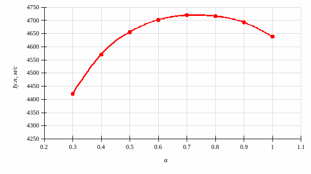 | Iу.п, м/с | 2928,27 | 3109,48 | 3330,91 | 3528,41 | 3679,27 | 3770,28 | 3805,27 | 3774,09 |