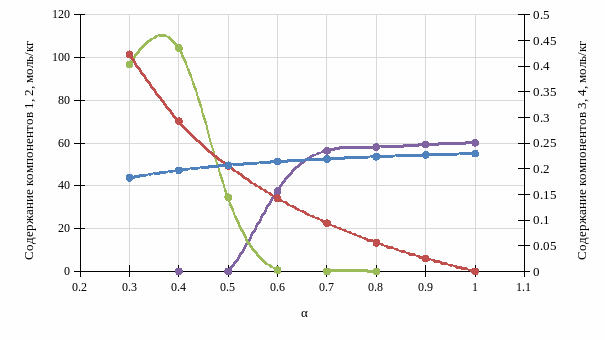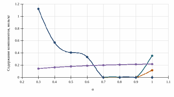 Примечания: 1. Содержание компонентов приведено в моль/кг. 2. k*C – конденсированная фаза.