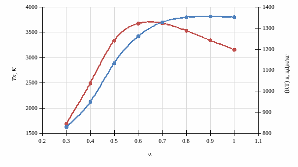 | Tк, К | 1429,61 | 1856,83 | 2544,15 | 3080,28 | 3435,46 | 3610,12 | 3664,5 | 3662,42 |