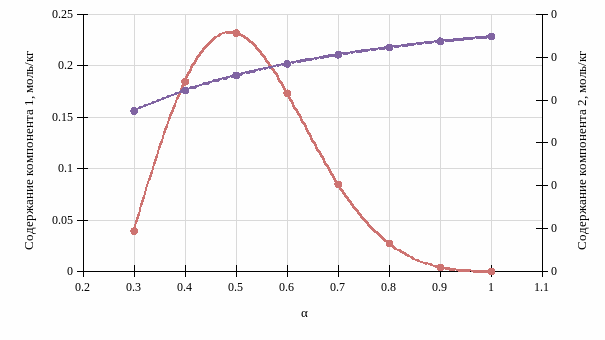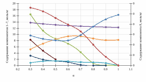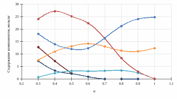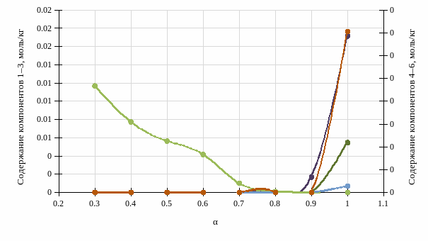 Примечания: 1. Содержание компонентов приведено в моль/кг. 2. k*C – конденсированная фаза.