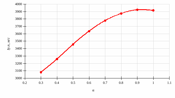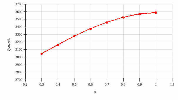 | Iу.п, м/с | 3045,26 | 3162 | 3275,4 | 3374,88 | 3458,69 | 3524,31 | 3569,17 | 3588,14 |