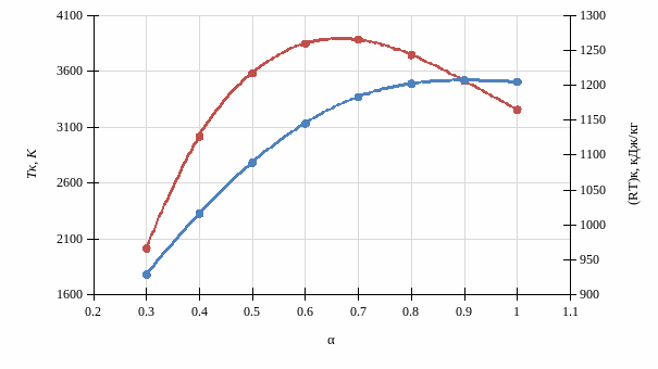 | Tк, К | 1777,72 | 2324,2 | 2780,89 | 3131,73 | 3368,63 | 3488,92 | 3521,26 | 3505,15 |