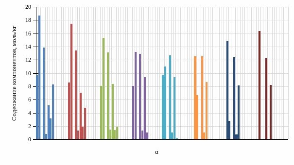 Хочется отметить, что при малых значениях α в ПС наблюдается большое количество K-фазы (см. рис. 8).