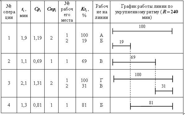 Под укрупненным ритмом понимается установленный период времени, в течении которого на линии осуществляется выработка продукции в количестве, соответствующему плановому заданию на этот период. Рекомендуется принимать величину укрупненного ритма 4 или 8 часов.