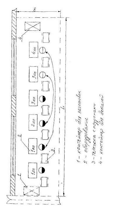 Рис. 6.3.1. Схема планировки прерывно – поточной (прямоточной) линии
