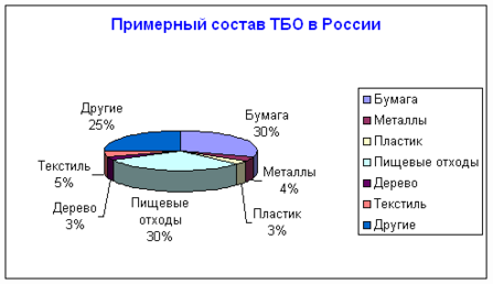 (Слайд 4) Состав ТБО приведен в виде секторной диаграммы: