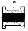 Рис. 8. Расположение изделия при штамповке плашмя. V1 – объем напуска при штамповке плашмя. |