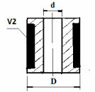 Рис. 9. Расположение изделия при штамповке в торец. V2 – объем напуска при штамповке в торец. |