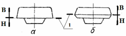 Рис. 6 Выбор плоскости разъема штампа | 1 – плоскость разъема штампа: В – верхняя половина штампа Н – нижняя половина штампа. а – нетехнологично; б – технологично. |