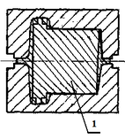 | б | При штамповке плашмя ось симметрии цилиндрической поковки параллельна плоскости разъема штампа. В этом случае наметки отверстия выполнить невозможно. |