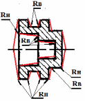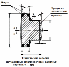 а | Rн – радиусы закруглений наружных углов штампованной поковки; Rв – радиусы закруглений внутренних углов штампованной поковки. |