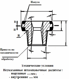 Рис. 23 Поковка, поступающая на механическую обработку В, Н – плоскость разъема штампа | |