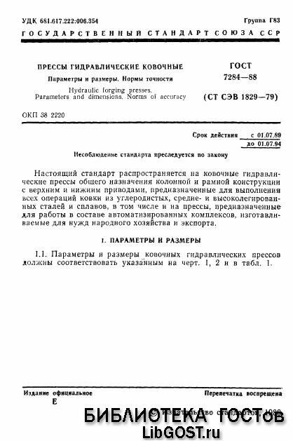 Файл №1245076 ГОСТ 7284-88 (ГОСТ 7284-88 - Прессы гидравлические ковочные. Параметры и размеры. Нормы точности)ГОСТ 7284-88 (1245076)2021-01-14СтудИзба