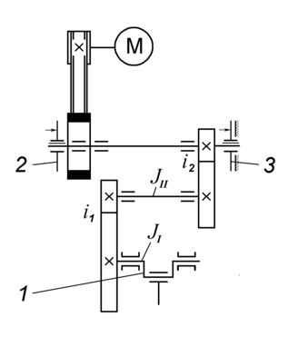 – приведённый к главному валу момент инерции кривошипно-ползунного механизма, включая кривошип с закреплёнными к нему деталями, шатун и ползун.