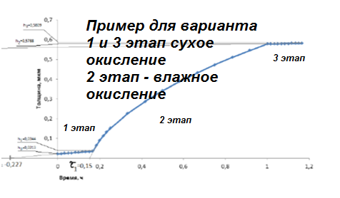 Пример графика для варианта, где на втором этапе применяется окисление во влажном кислороде.