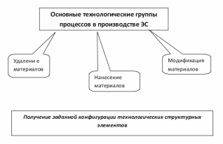 Анализ технологий изготовления электронных средств показал, что каждое из приведенных технических полей можно в принципе использовать для удаления, нанесения и модификации поверхности деталей и формирования заданной конфигурации элементов, составляющих электронные структуры.
