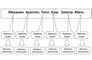 Пример технического поля для модификации: механическое поле – наклеп, акустическое поле УЗ закалка, тепловое поле – термозакалка