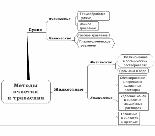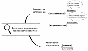 Методика очистки зависит от того, какие именно загрязнения имеются на поверхности заготовки или детали (изделия). К типичным загрязнениям относятся физические, органические, химические, ионные и атомные (см. рис.1.1).