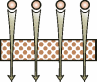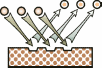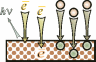Дальнейшее повышение энергии потока(E3>E2) приводит к эффекту "брошенного булыжника". Если, например, долго бомбардировать булыжниками оштукатуренную стену, можно слой штукатурки отбить полностью. Аналогично, попадающие на поверхность частицы в состоянии производить микровырывы материала поверхности (на молекулярном уровне, разумеется). Бомбардируя ионами соответствующей энергии поверхность, можно добиться полного удаления поверхностного слоя - толщиной от нескольких рядов молекул до микронного диапазона. Такие процессы называют ионным травлением, ионным фрезерованием и т.п.