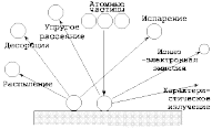 Рис. 2.12. Схема взаимодействия поверхности с атомами и ионами