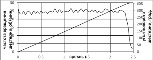 Рис. 8. Зависимость частоты вращения шестерни от времени