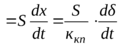 Из условия непрерывности потока жидкости (9) можно считать, что объемные секундные расходы жидкости через золотник (11) и полости силового цилиндра (12) равны. Приравнивая (11) и (12), с учетом (4) получим: