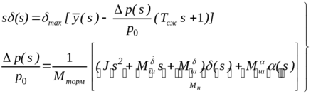 Объединив (58) и (77), получим систему двух уравнений, определяющую динамические свойства гидравлической рулевой машинки - отклонение руля ЛА