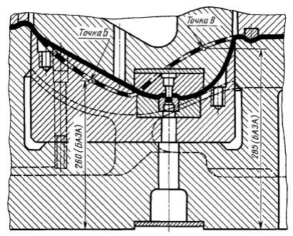 указания об уточнении исполнительных размеров рабочих частей̆ по результатам экспериментального определения конфигурации заготовки и углов пружинения штампуемого материала;