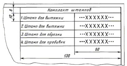 4.1.13. Наименование штампа, указываемое в основной̆ надписи сборочного чертежа,должно соответствовать ГОСТ 15830-84 Обработка металлов давлением. Термины и определения.