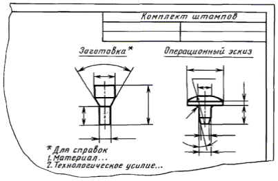 Допускается помещать слева от операционного эскиза изображение заготовки - исходной̆ или полученной̆ после предыдущей̆ операции штамповки. При этом над изображениями должны быть нанесены соответствующие заголовки рис.11.