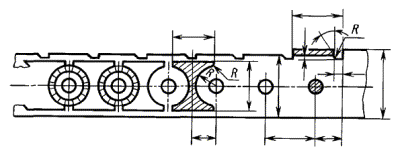 4.1.17. На планах низа и верха допускается не изображать полностью перетяжные ребра и канавки под них, канавки под смазку, рукава трубопроводов и т.п., показывая только их концы и проводя осевые линии рис.9.