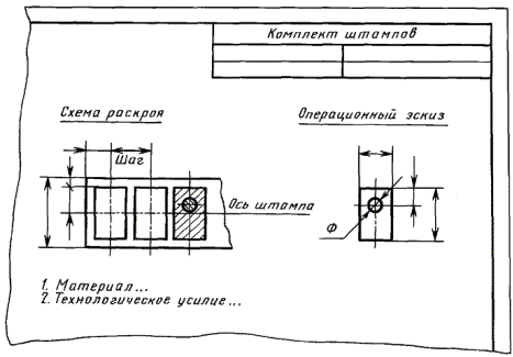 4.1.21. Допускается помещать операционный̆ эскиз, изображение заготовки, схему раскроя исходного материала и переходы штамповки на отдельном (последнем) листе сборочного чертежа.