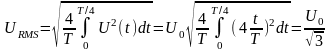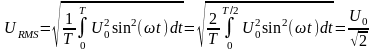 В формулах, представленных ниже, используются следующие обозначения: U0 - амплитудное напряжение, URMS - эффективное напряжение, ω - циклическая частота, подаваемого сигнала, T - период колебаний тока, t – время.