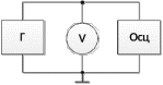 Рисунок 5. Схема установки для измерения периодических сигналов без постоянной составляющей. Г - генератор GFG, V - мультиметр GDM-8145, ОСЦ - осциллограф Textronix