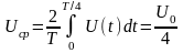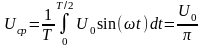 , где U0 - амплитудное напряжение, Uср - среднее напряжение, T - период колебаний тока, t - время.